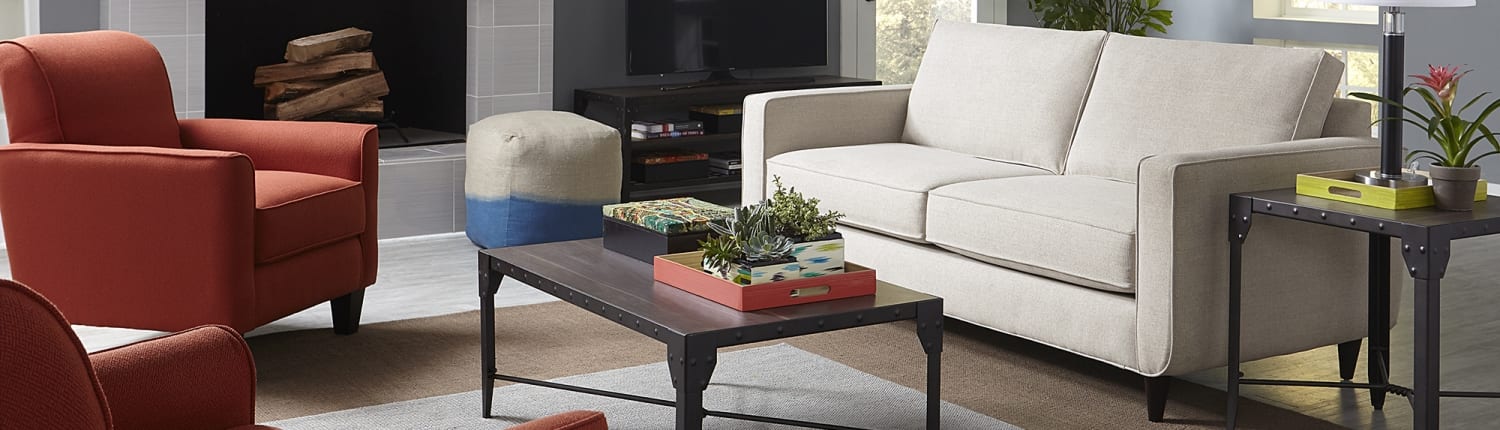 Sofa, Chair, Coffee Table, End Table & Lamp, Smart TV, TV Stand